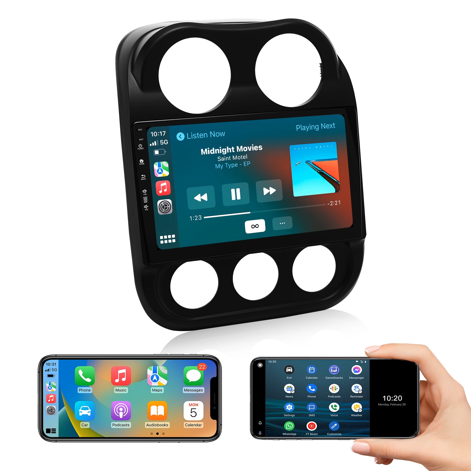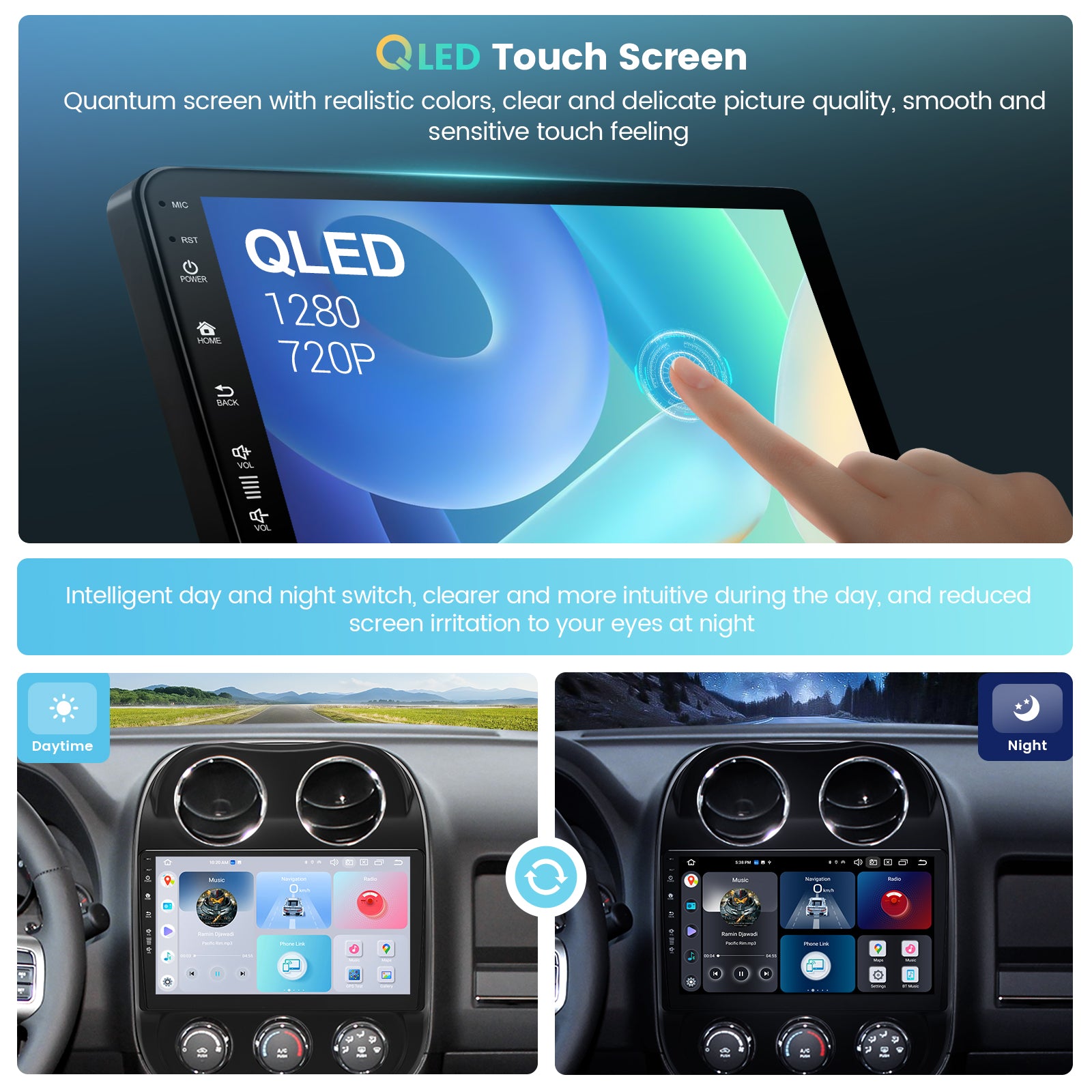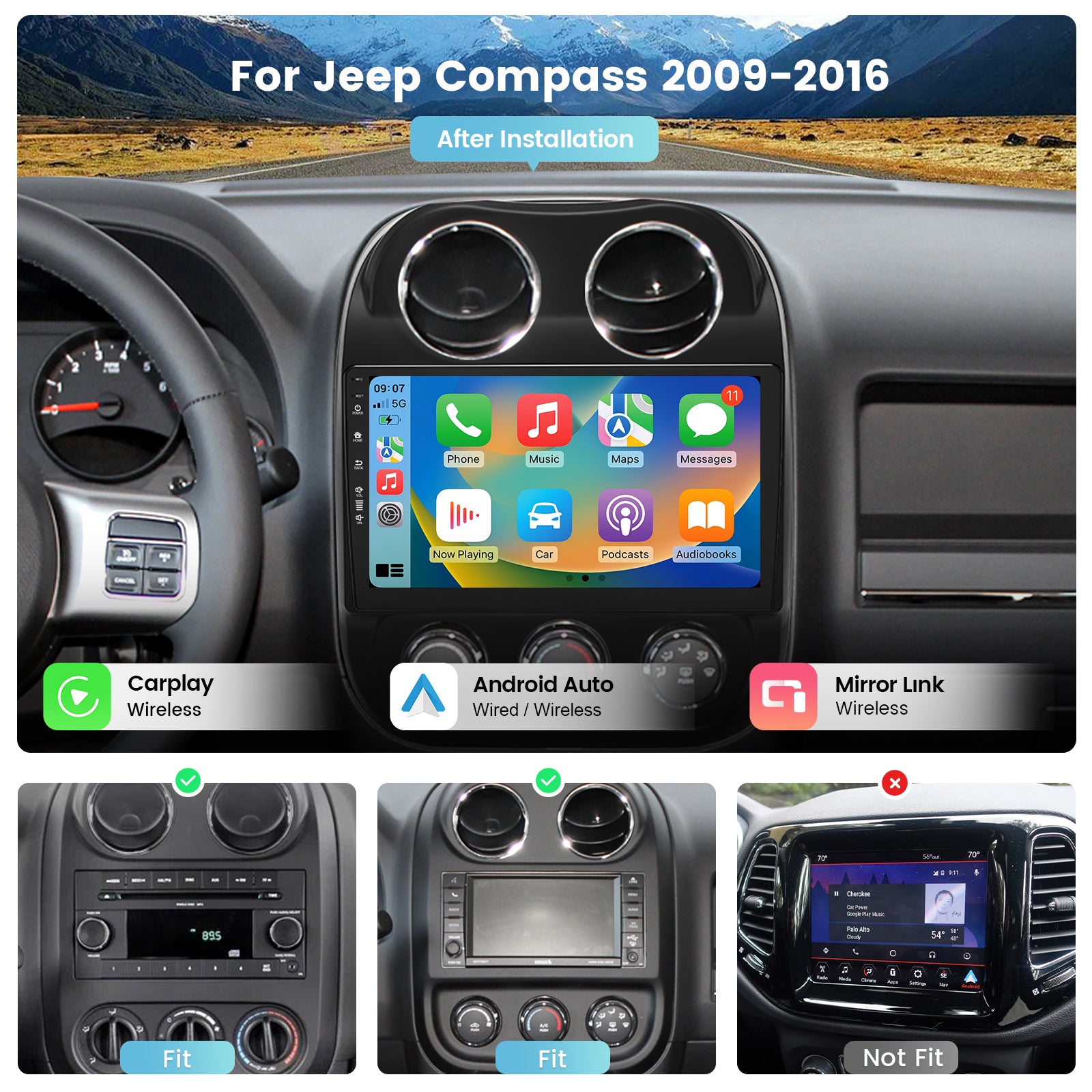 - 【Built in-DSP, Bluetooth 5.0, AM/FM,】This Jeep Compass radio has built-in DSP surround sound and 4*48W output for more clear sound.BT 5.0 Provides faster transmission speed and longer effective distance. By connecting to your phone, you can play music and download phonebooks by hands-free calling. With the FM&AM function, you can listen to real-time radio, weather forecasts, and news.
